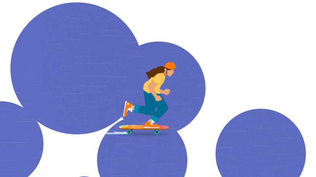 PT – A personagem representa a juventude e a potência do skate brasileiro, com um design simples e expressivo que garante uma leitura clara e rápida. Animada por meio de rigging, ela combina cores vibrantes inspiradas na cultura do skate.